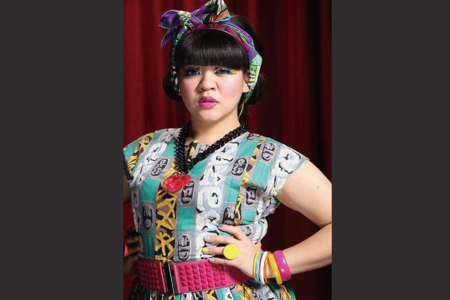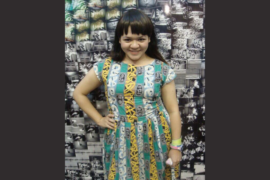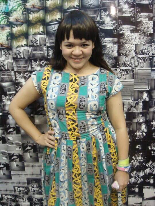媽媽年輕的時候最愛連身長洋裝,綠底黃、白、灰塗鴉的高腰長洋裝,裙長約至小腿肚,戴上假瀏海片,綁個小清新公主頭,腳下若在配上有蕾絲荷葉邊的襪子搭瑪麗珍鞋,活脫脫是個五○年代小姑娘的漂亮打扮。若是不想這麼複古,想前衛、華麗一點,可以綁個髮帶,再搭配大量色彩鮮豔的飾品及高腰寬腰封,又會呈現出不一樣的衝突美感,一種新舊融合、時空交錯的氣氛。