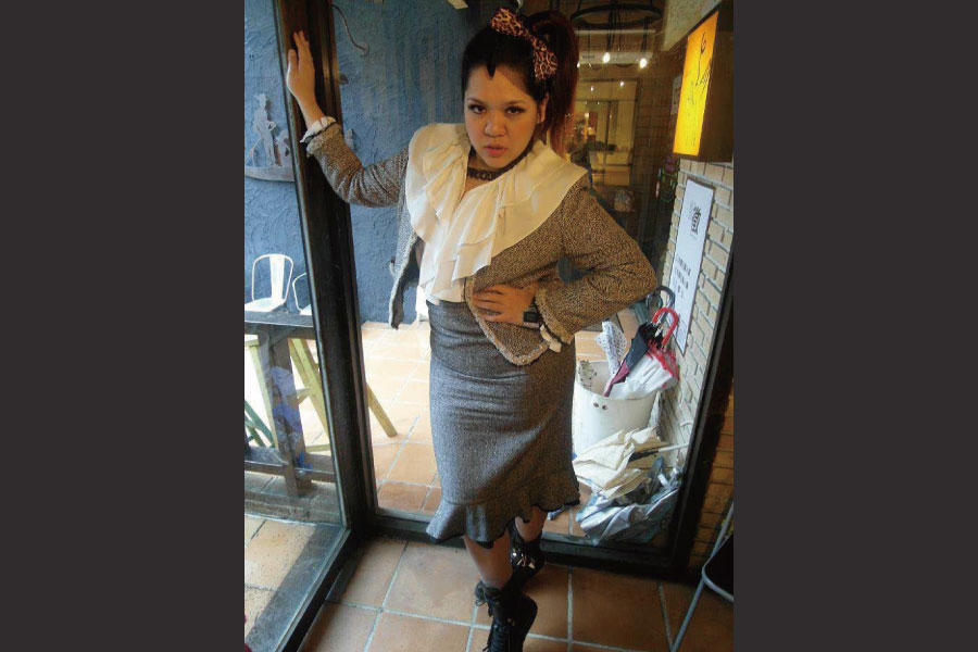 朋友聚會玩穿媽媽衣服復古趴,我超級認真投入,從大荷葉領的白襯衫到短版毛呢外套再到高腰魚尾裙,身上的每件衣服都是媽媽的壓箱寶。尤其是高腰魚尾裙,當我翻到它的時候真的是愛不釋手,因為比起現在流行的魚尾短裙,就是要過膝的魚尾裙才優雅、有氣質呀!雖然是復古趴,但我還是想要帶一點自己的個性,所以搭了一雙高筒、有個性的平底靴,綁了超高馬尾,還很三八的戴了豹紋蝴蝶結頭飾。